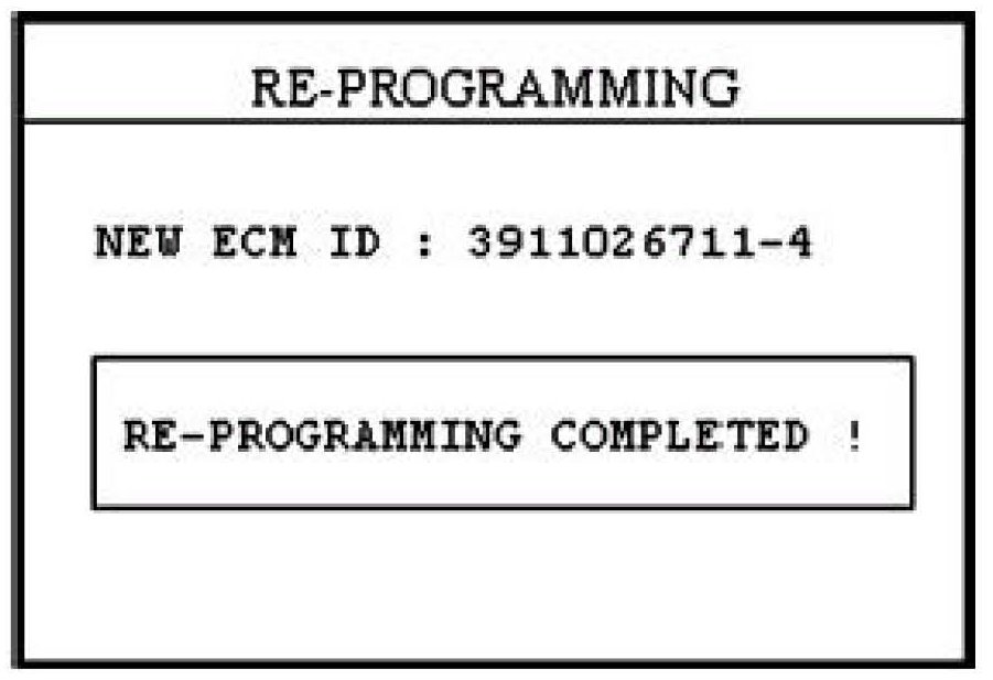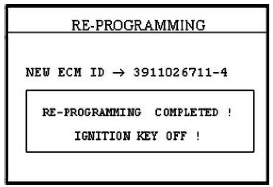 5. When the reprogramming is completed turn the ignition key off for 20 seconds before starting the engine.