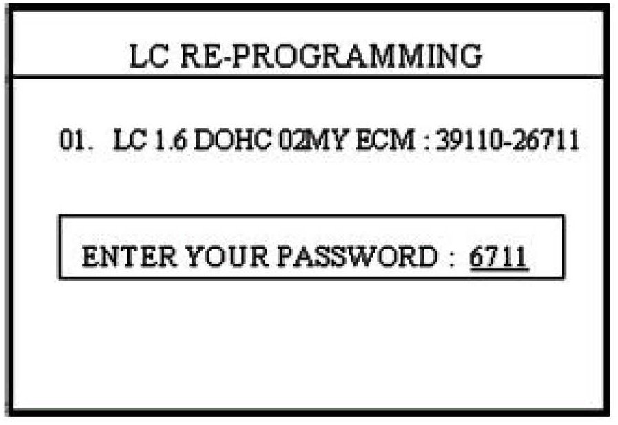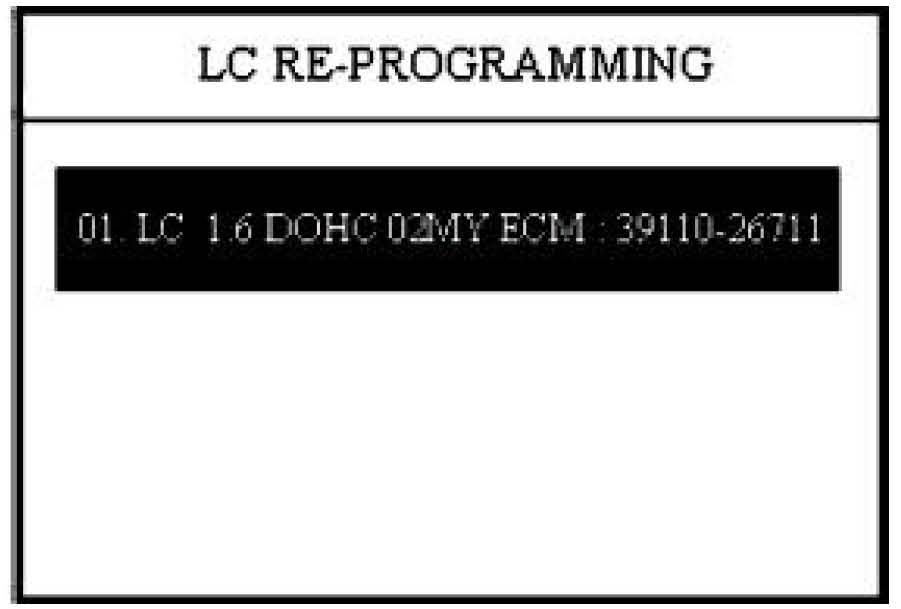 5. Select "01. LC 1.6 DOHC 02MY ECM: 39110-26711" and press ENTER.
