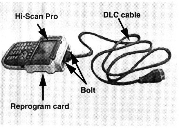1. Attach the Data Link Connector (DLC) cable to the Hi-Scan Pro main body and tighten the 2 bolts securely.