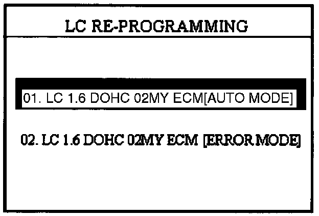 7. Select option "01. LC 1.6 DOHC O2MY ECM (AUTO MODE]" and press ENTER.