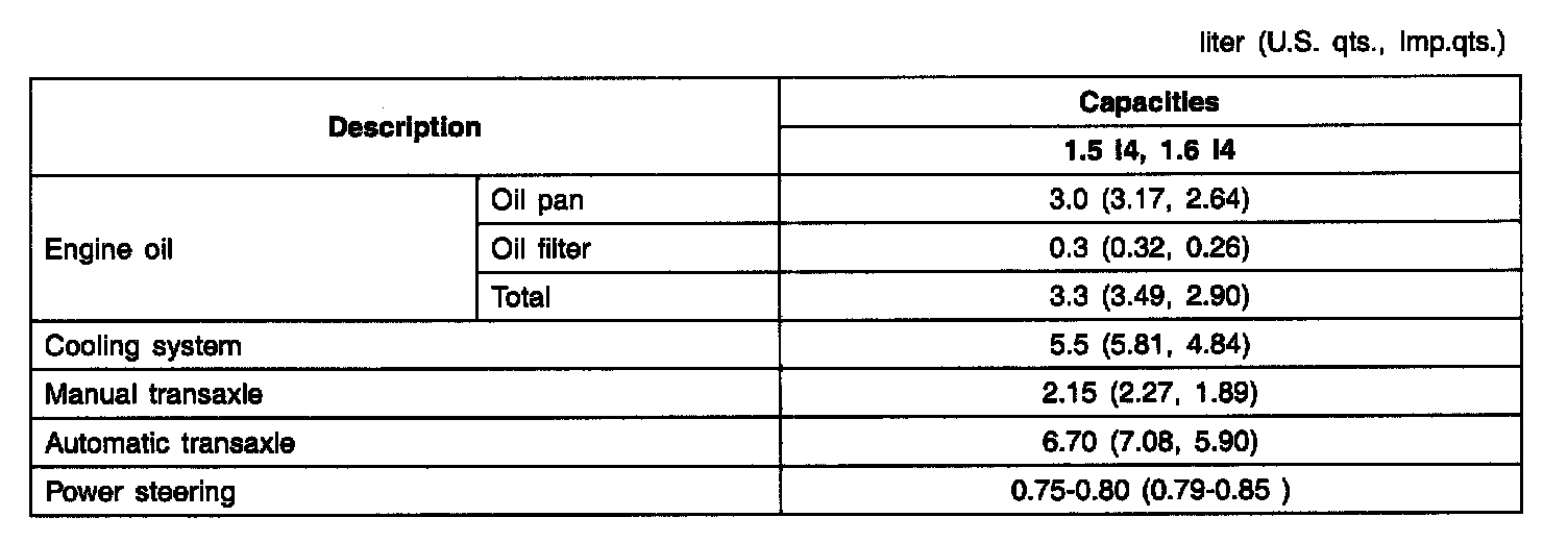 Lubricants Capacities: