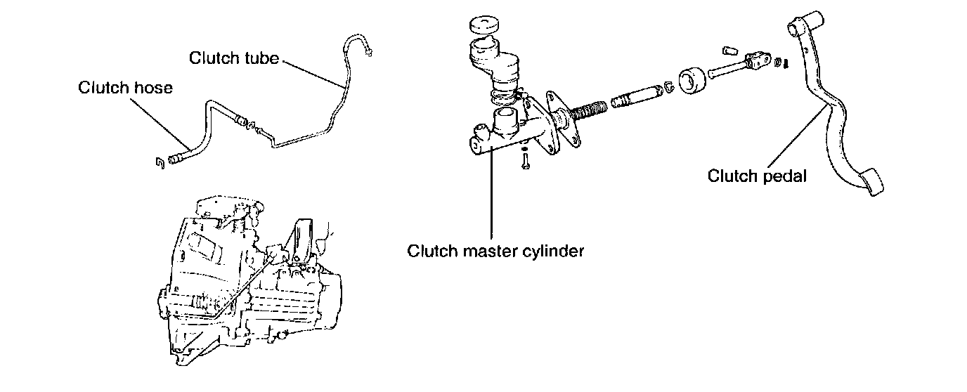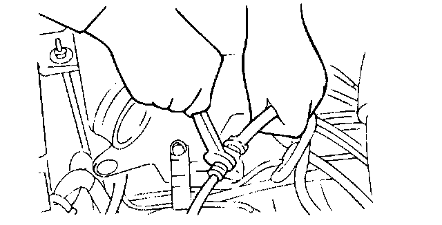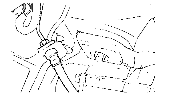 6. Hold the nut on the clutch hose and loosen the flare nut on the clutch line.