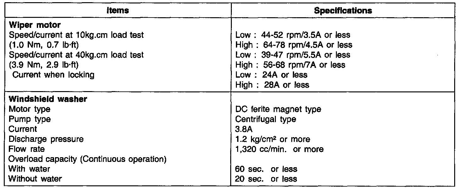 Wiper and Washer Systems: Specifications