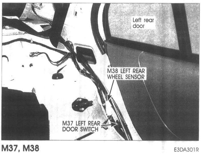 M37 Left Rear Door Switch, M38 Left Rear Wheel Sensor: