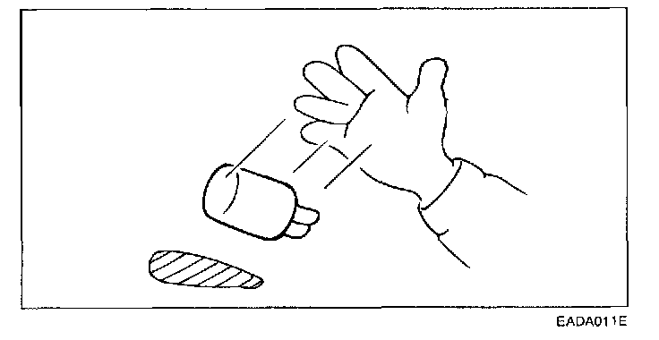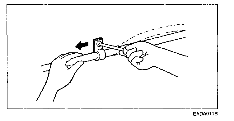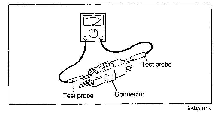 11. When using a circuit tester to check continuity or voltage on connector terminals, insert the test probe into the harness side. If the connector is a sealed connector, insert the test probe through the hole in the rubber cap until it contacts the terminal, being careful not to damage the insulation of the wires.