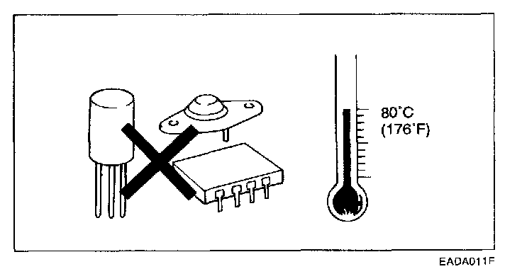 6. The electronic parts used in the computer, relays, etc. are readily damaged by heat. It there is a need for service operations that may cause the temperature to exceed 80°C (176°F), remove the electronic parts beforehand.