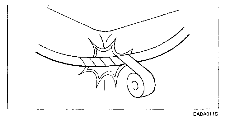 3. If any section of a wiring harness interferes with the edge of a part, or a corner, wrap the section of the harness with tape or something similar in order to protect it from damage.
