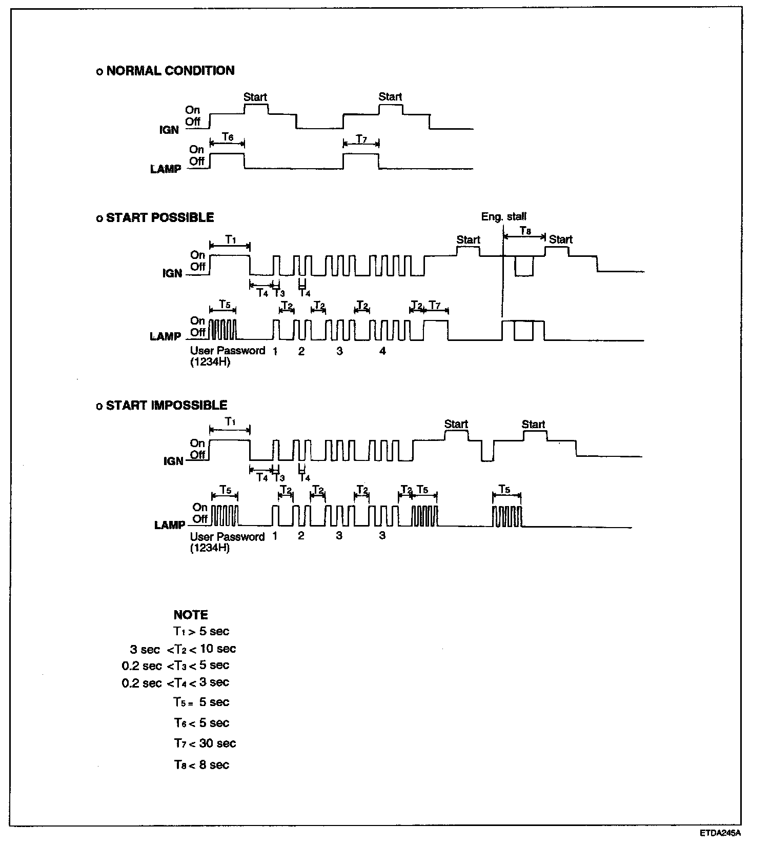 The limp home can be activated also by the ignition key. The ECM informs the driver by blinking the immobilizer indicator for the limp home condition. Then the user password can be input to ECM can be done by special sequence of ignition on/off.