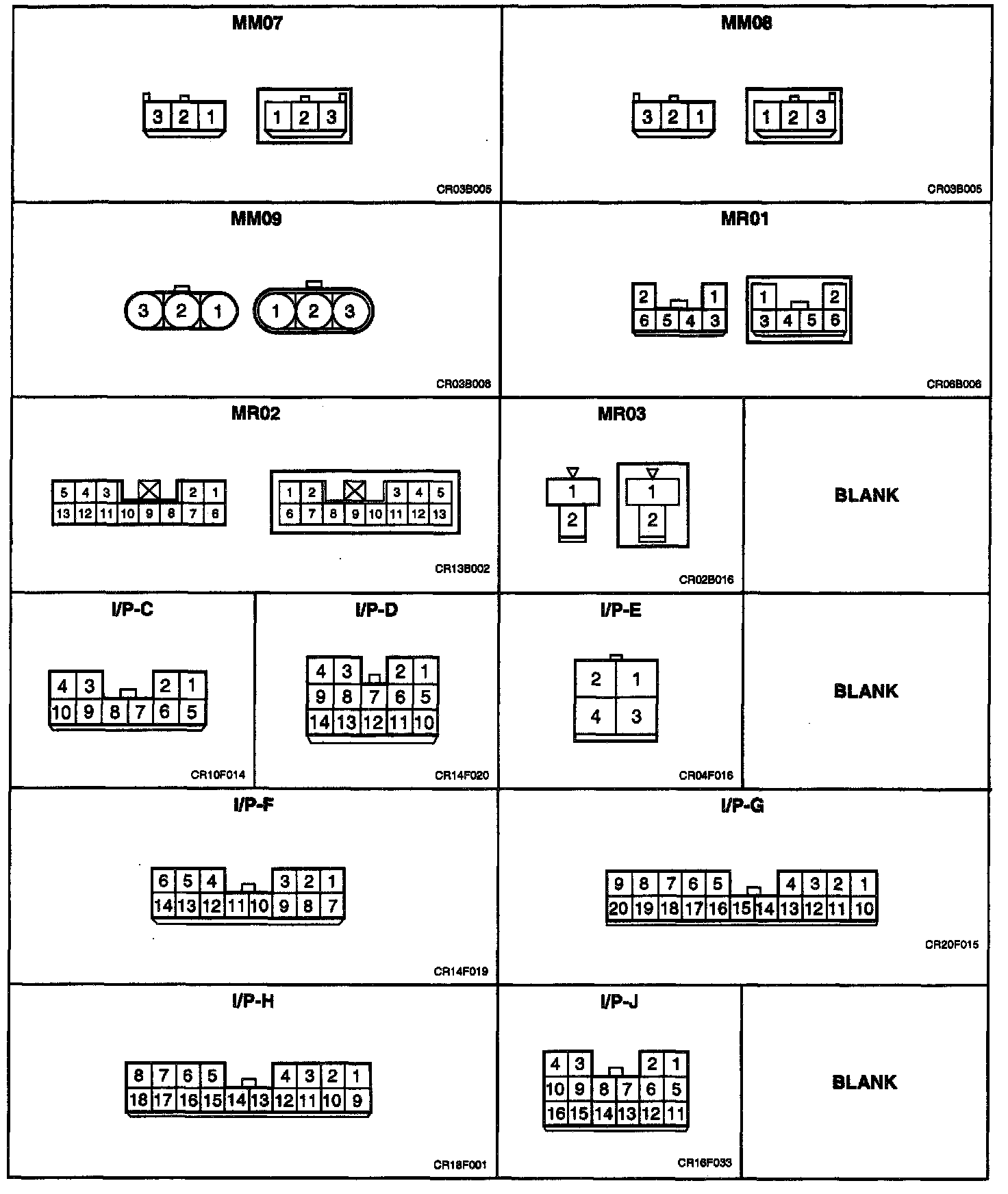 MM07 - MM09, MR01 - MR03, I/P-C - I/P-J: