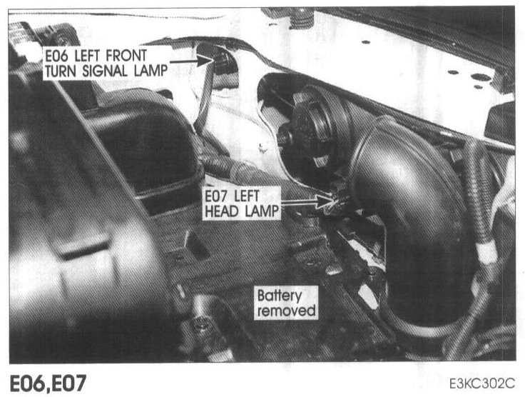 E06 Left Front Turn Signal Lamp, E07 Left Head Lamp: