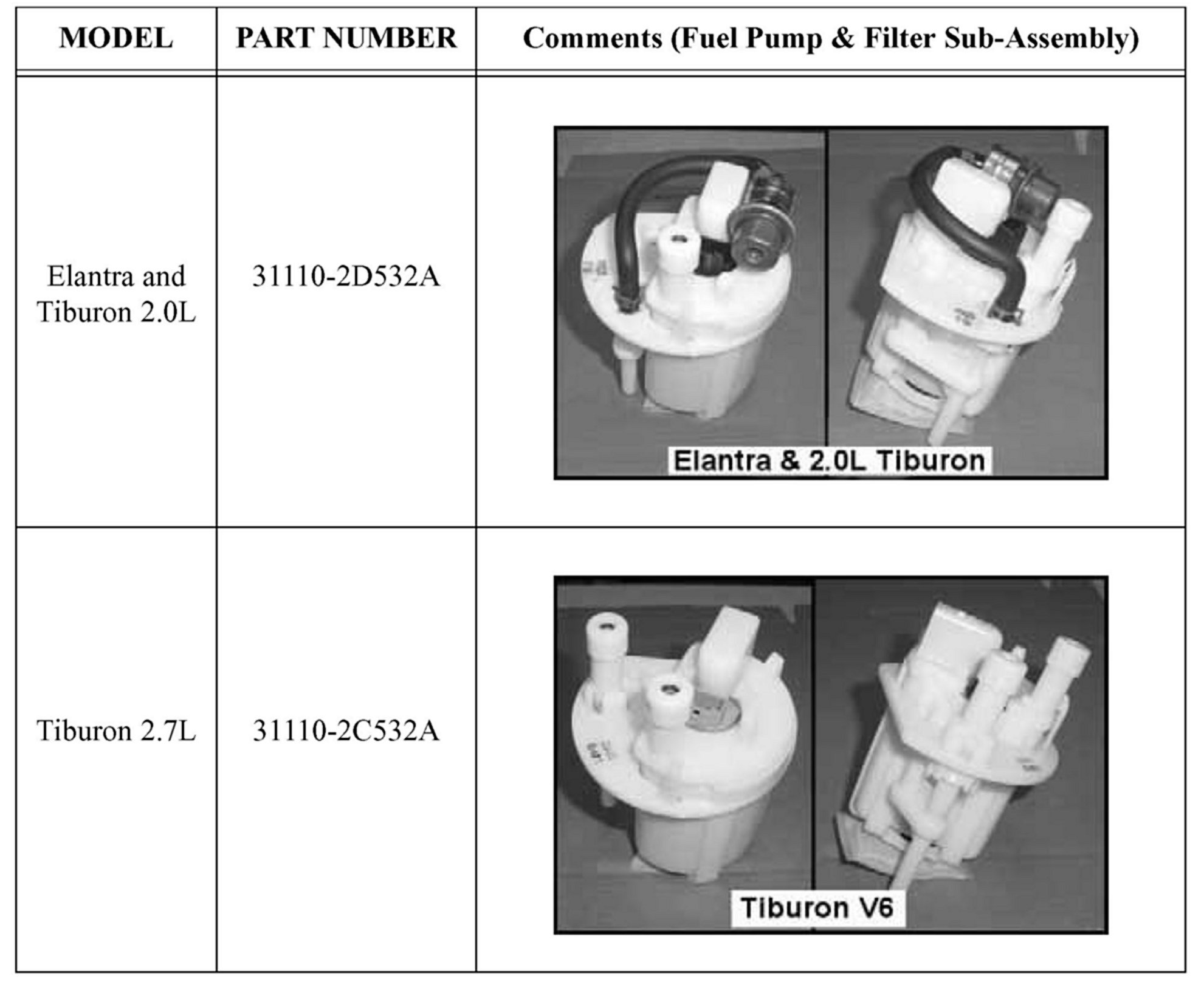 2002-2004 ELANTRA AND TIBURON FUEL PUMP REPLACEMENT - SERVICE CAMPAIGN T13