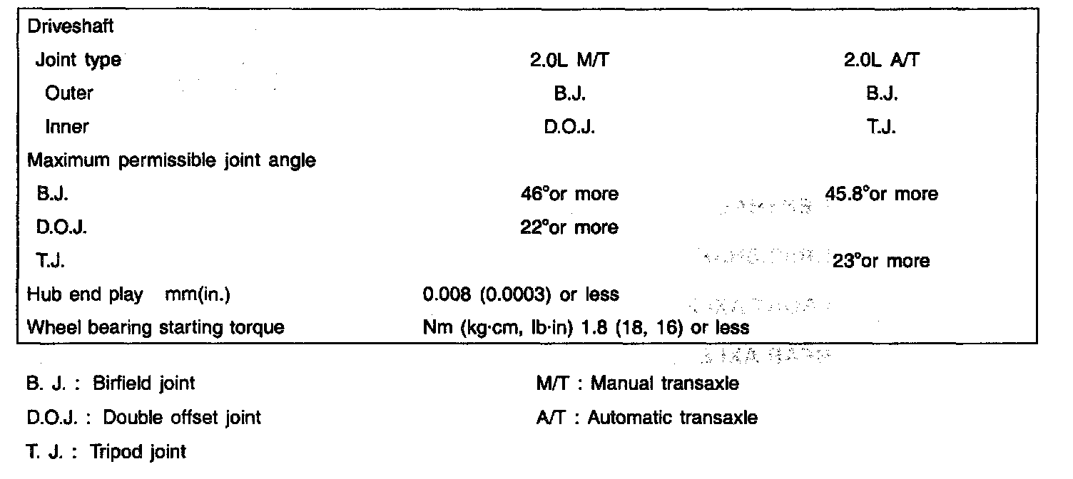 B. J. : Birfield joint M/T Manual transaxle