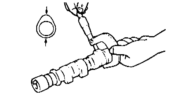 2. Check the oil seal lip contacting surface of the camshaft. If it is worn, replace the camshaft.