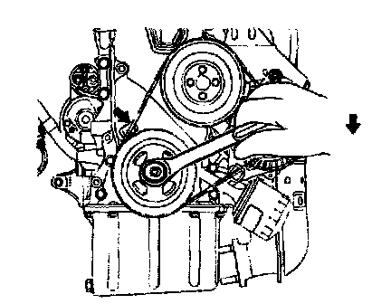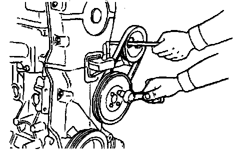 2. Remove the coolant pump. pulley and crankshaft pulley.