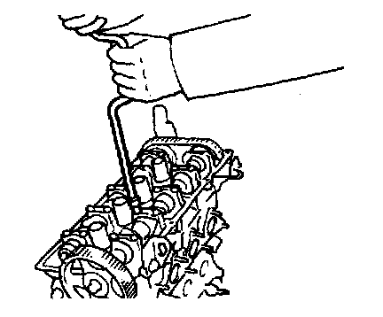 b. Using the special tool (09220-2D000), press down the valve lifter and place the stopper between the camshaft and valve lifter and remove the special tool.