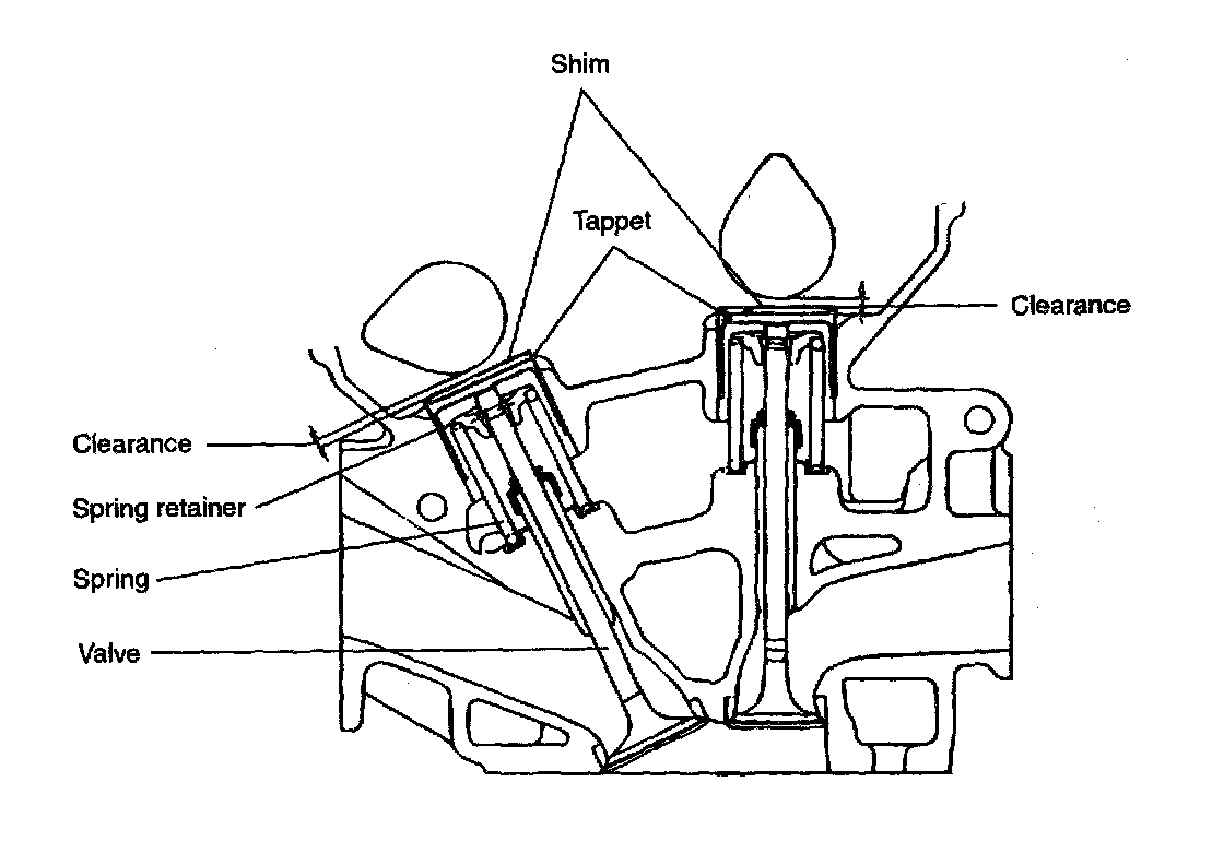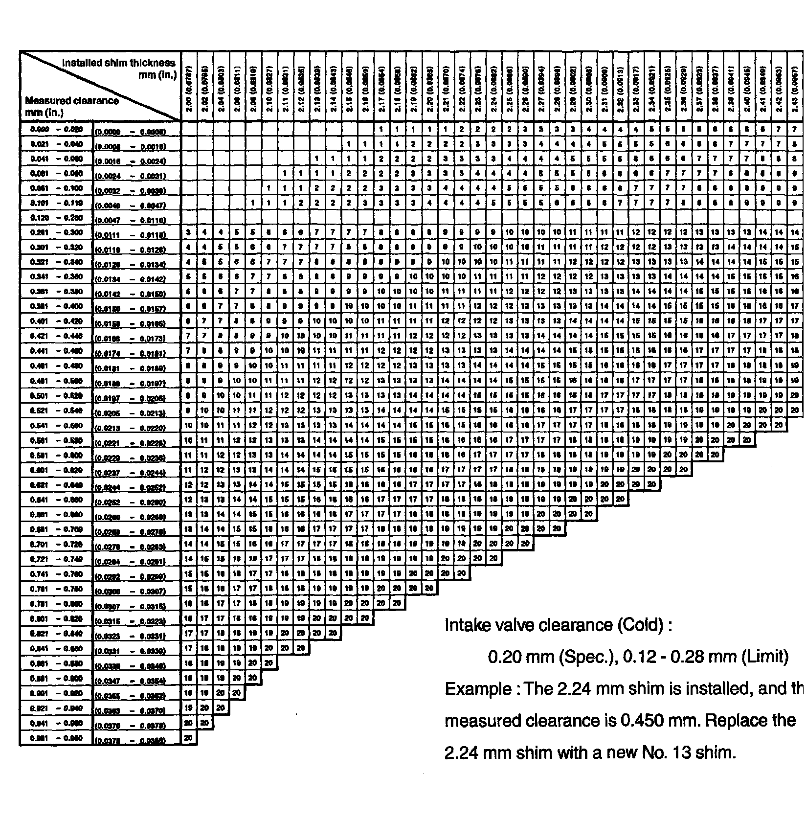 e. Calculate, the thickness of a new shim so that the valve clearance comes within the specified value.