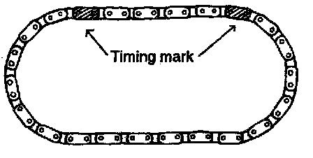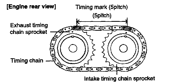 2. Align the camshaft timing chain with the intake timing chain sprocket and exhaust timing chain sprocket as shown.