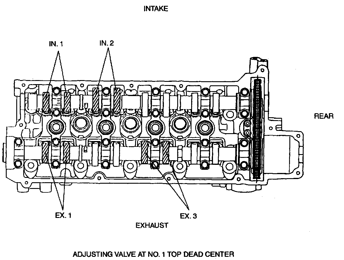 NOTE: Inspect and adjust the valve clearance when the engine is cold (Engine coolant temperature: 20°C) and cylinder head is installed on the cylinder block.