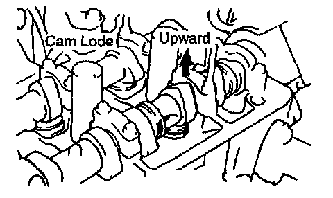 4. Install the bearing caps. The markings on the caps are for intake/exhaust identification.