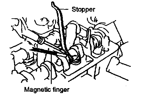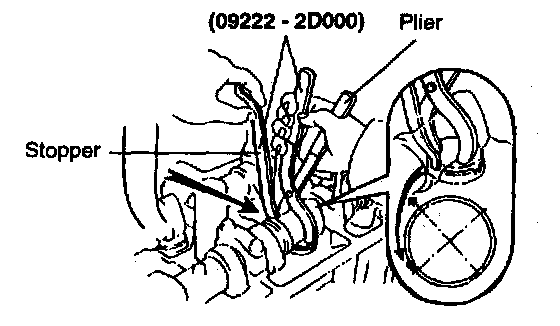 h. Using the special tool (09220-2D000), press down the valve lifter and remove the stopper.