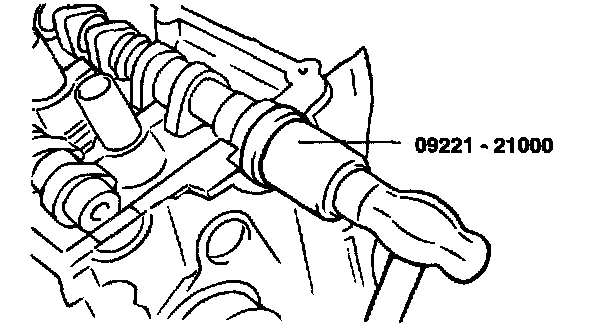 6. Using the special tool, camshaft oil seal installer (09221-21000), press the camshaft oil seal. Be sure to apply engine oil to the oil seal lips. Insert the oil seal along the camshaft front end and install by driving the installer with a hammer to 8.5 mm (0.3346 inch) depth from the front end face of the camshaft.