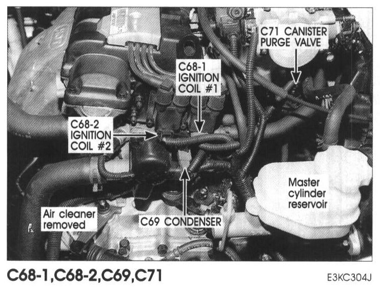 C68-1(#1), C68-2(#2) Ignition Coil, C69 Condenser, C71 Canister Purge Valve: