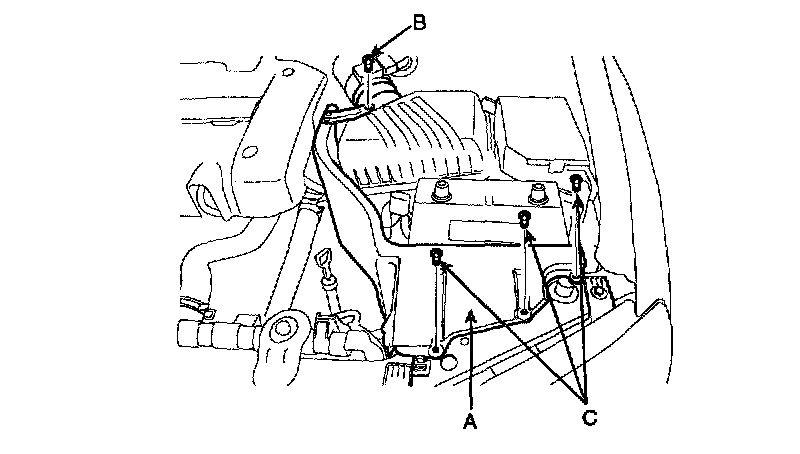 2. Remove the heat shield(A). (Bolt: 1EA(B), Retainer: 3EA(C))