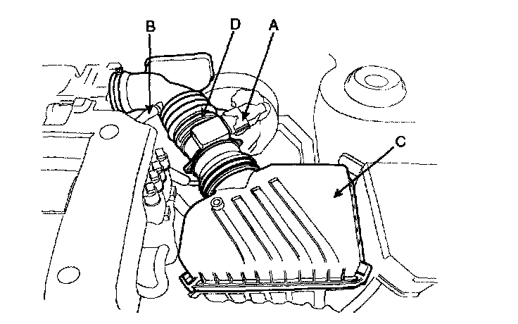 2. Air cleaner upper cover (C) and air intake hose(D).