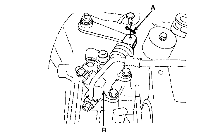 6. Remove the cotter pin(A) of the clutch release cylinder(B).