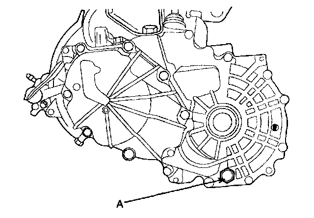 16. Remove the drain plug(A) and drain the transaxle gear oil.