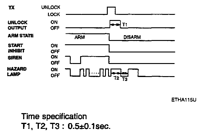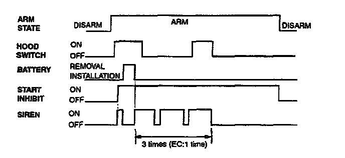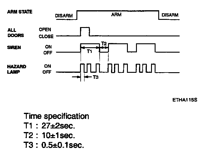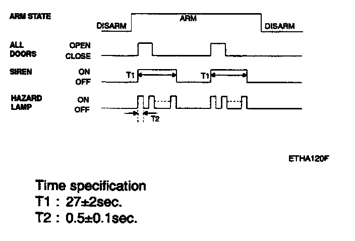 h. Disarmed after 30 sec when the ignition switch turned on during the alarm state.