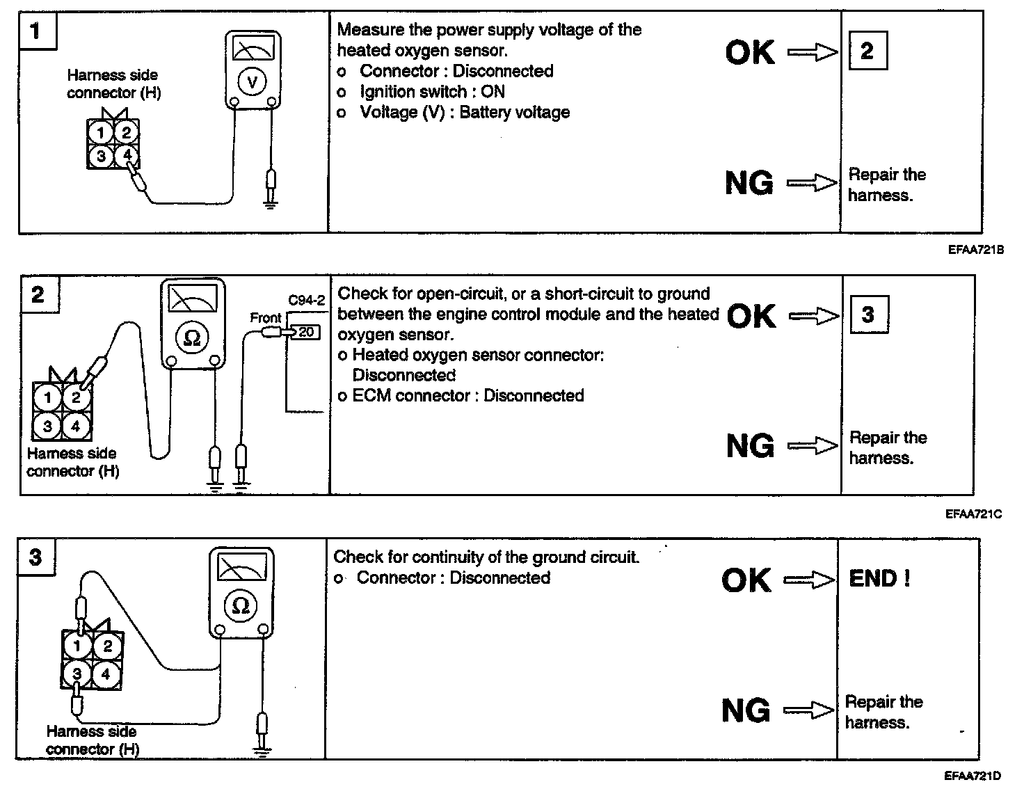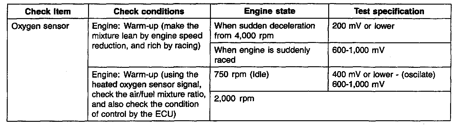 2. If the HO2S check results were normal, but the sensor output voltage is out of specification, check for the following items (related to air fuel ratio control system):