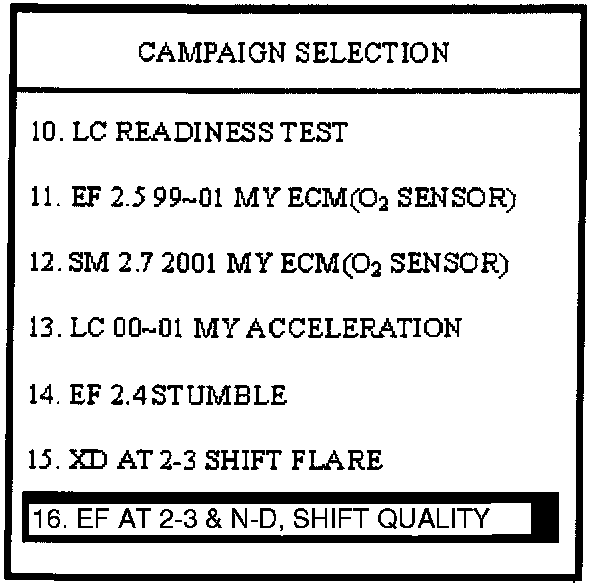 10. Select option "16. EF AT 2-3 & N-D, R SHIFT QUALITY" and press ENTER.