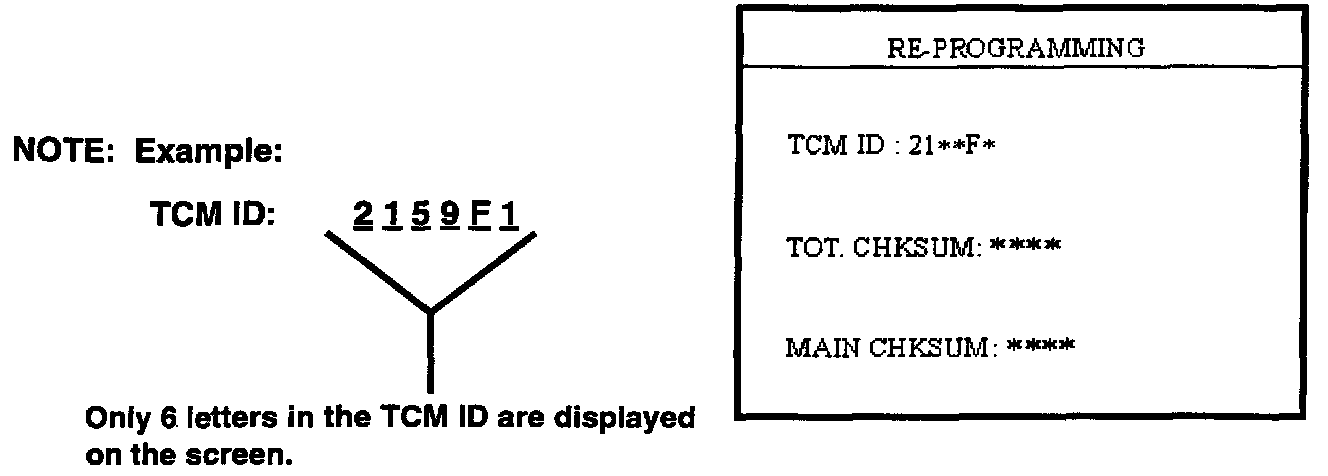 Check the new TCM or ECM/TCM IDs displayed on the screen with the ECM/TCM specifications shown in this TSB to verify that the correct TCM or ECM/TCM program has been downloaded.