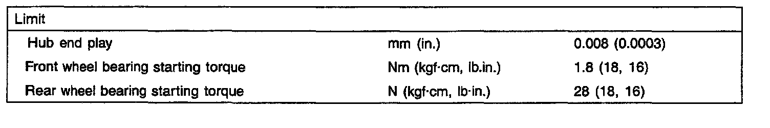 Front Wheel Bearing Starting Torque 1.8 Nm (16 inch lbs.)