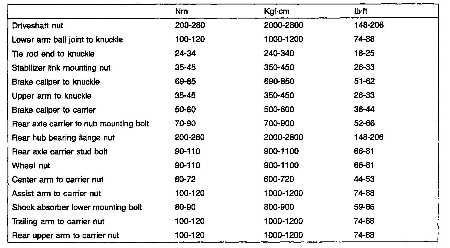 Rear Axle Carrier To Hub Mounting Bolt 70 - 90 Nm (52 - 66 ft. lbs.)