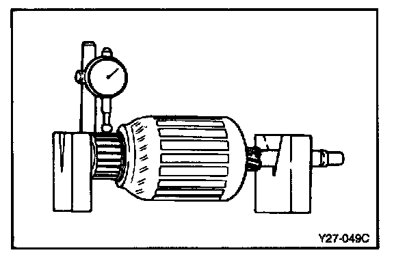 CHECKING THE COMMUTATOR1. Place the armature on a pair of V-blocks, and check the deflection by using a dial gauge.