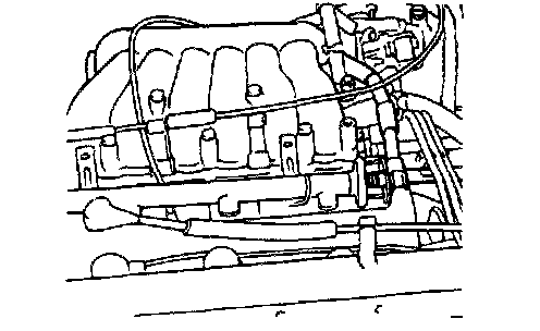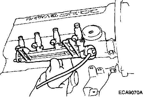 9. Remove the delivery pipe with fuel injectors and the pressure regulator.
