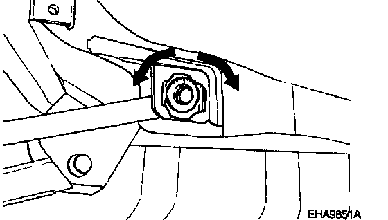 1. The assist arm mounting cam bolt (crossmember side) should be turned an equal amount on both sides when adjusting.