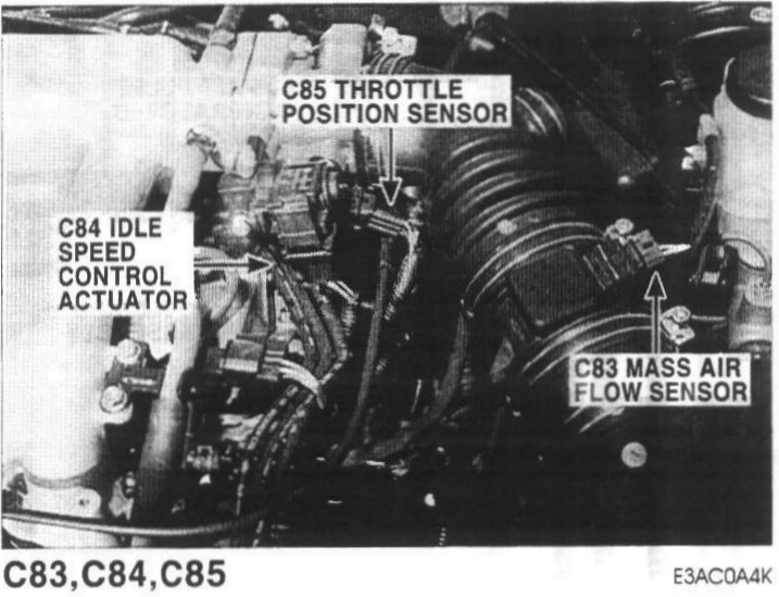 C83 Mass Air Flow Sensor, C84 Idle Speed Control Actuator, C85 Throttle Position Sensor: