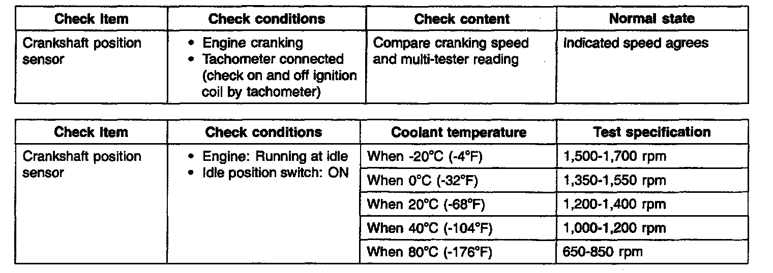 3. If the engine can be run at idle even if the crank angle sensor reading is out of specification, check the following: