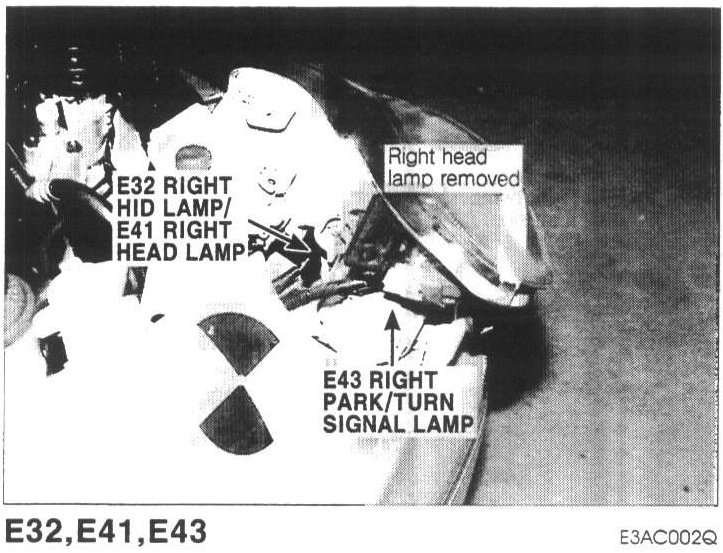 E32 Right HID Lamp, E41 Right Head Lamp, E43 Right Front Park/turn Signal Lamp: