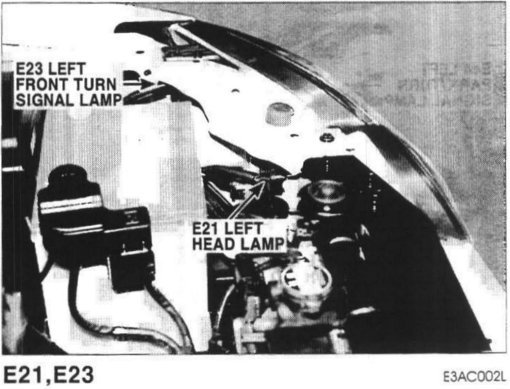 E21 Left Head Lamp, E23 Left Front Turn Signal Lamp: