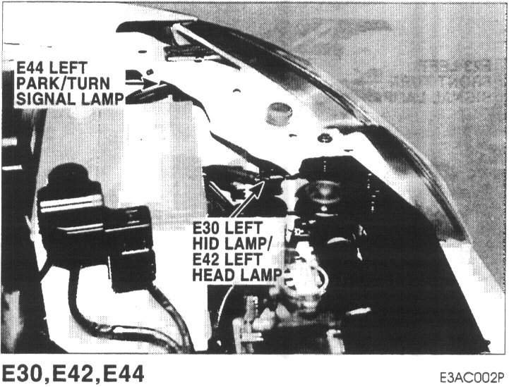 E30 Left HID Lamp, E42 Left Head Lamp, E44 Left Front Park/turn Signal Lamp: