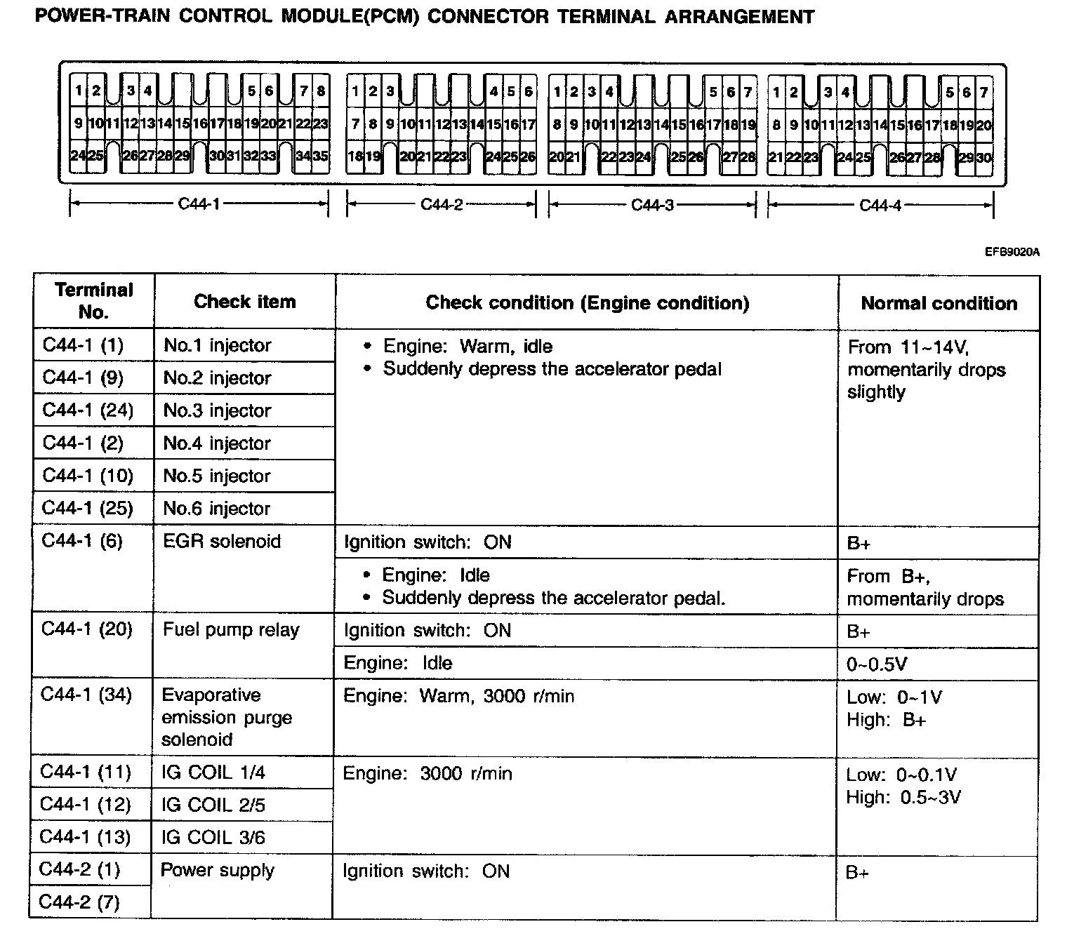 Power-Train Control Module(PCM) Connector Terminal Arrangement Part 1: