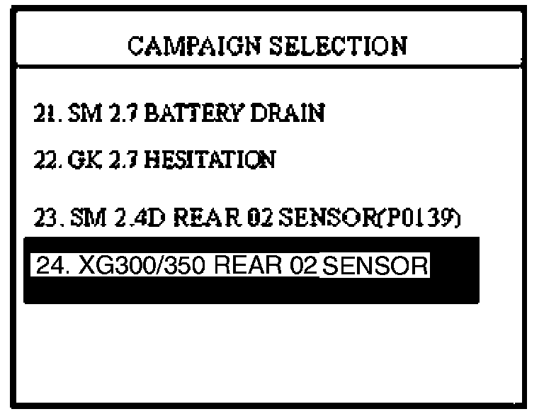 10. Select option "24. XG300/350 REAR 02 SENSOR" and press ENTER.