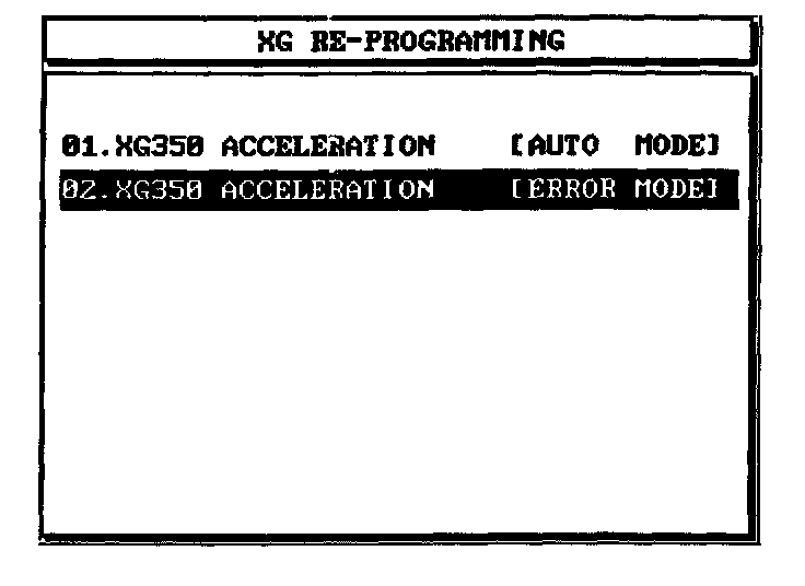 4. Select option "02. XG350 ACCELERATION [ERROR MODE]" and press ENTER.
