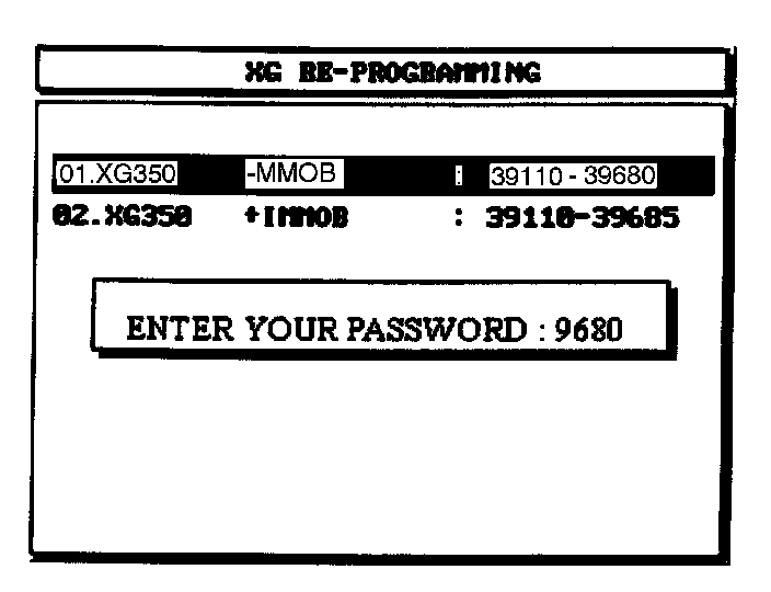 5. Select option "01. XG350-IMMOB" and enter 9680 for the password. Then press ENTER.