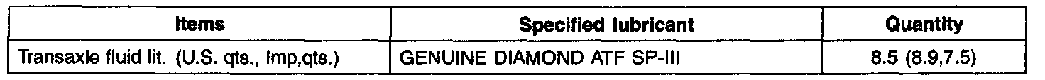 Transaxle fluid lit. (U.S. qts., Imp,qts.)