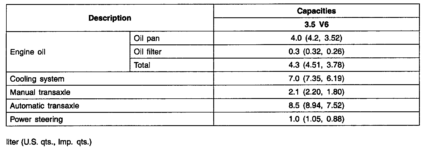 Lubricants Capacities: